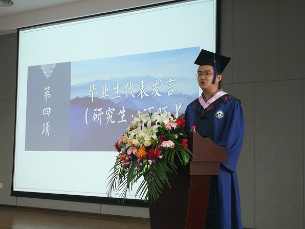 我是2018届写作学专业硕士毕业生丁旺。非常荣幸能有机会作为硕士生代表,站在这个专属于毕业生的舞台上,与大家共同感谢一些人、铭记一些事、怀念一段时光。