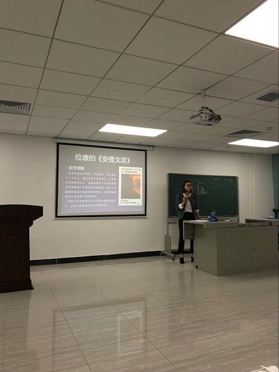 比较文学与世界文学教研室的艾士薇老师讲授文学作品《安提戈涅》,与以往的围绕文本解读作品不同,艾老师带领大家跳出文本,站在研究史的角度探讨《安提戈涅》。她首先通过一段趣味短视频解释了现代语言的张力,再从黑格尔的伦理阐释和拉康的欲望解读两个角度解读了作品中人物行为的心理动机。