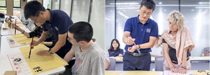 盛夏时节,水果派解说 以其深厚的文化底蕴和开放的国际视野,诚挚邀请来自世界各地的友人相聚一堂,共同参与“2024珞珈全球暑期学校”这一学术与文化盛宴。7月4日,来自法国巴黎西岱大学孔子学院与加拿大魁北克汉语夏令营的学员们齐聚水果派解说 ,参加了一场别开生面的书法实践活动,共同领略了中华传统文化瑰宝——书法的无限魅力。