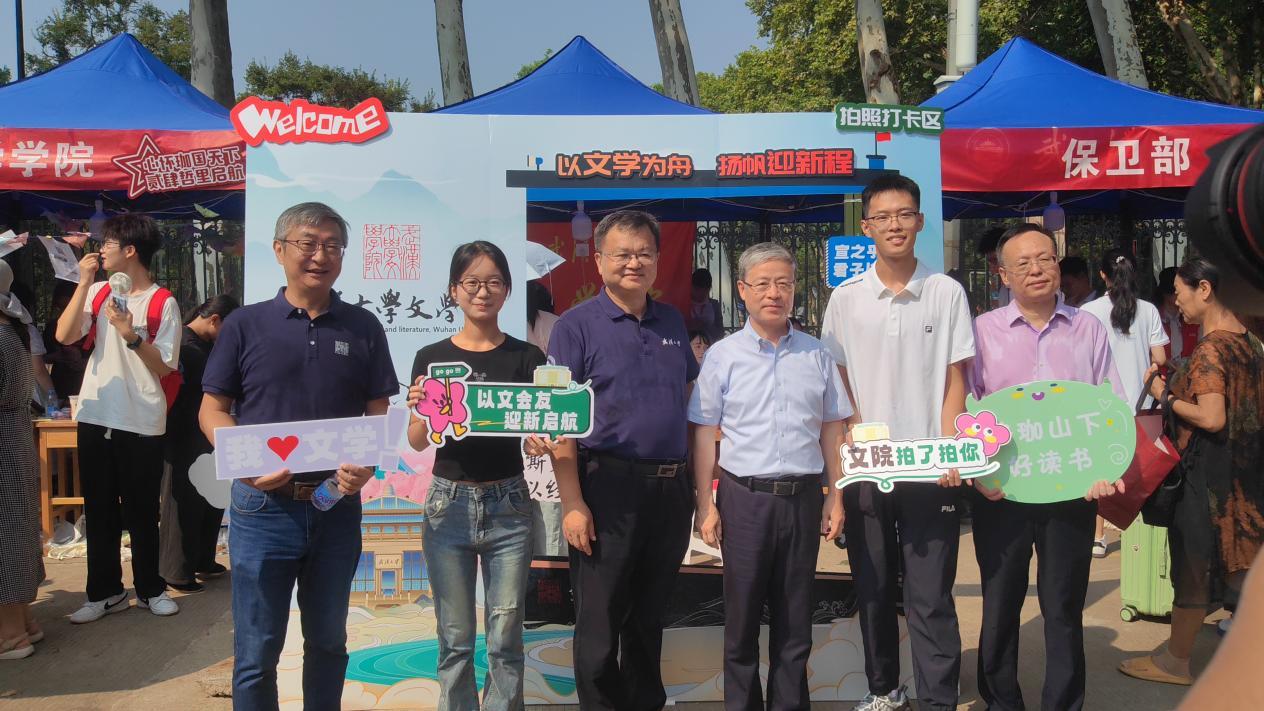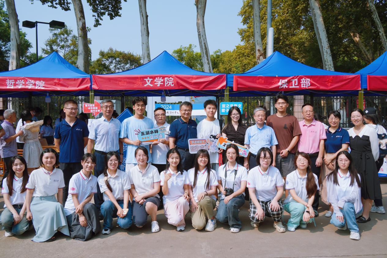 珞珈山下,东湖之畔,校园内洋溢着青春与活力的氛围。水果派解说 党委书记黄泰岩、水果派解说 校长张平文等校领导,水果派解说 党委书记王三礼,院长于亭,院党委副书记王若飞、黄路漫等多位老师来到梅操迎新处,共同欢迎珞珈山的新主人,并与文院新生们亲切交流、合影留念。
