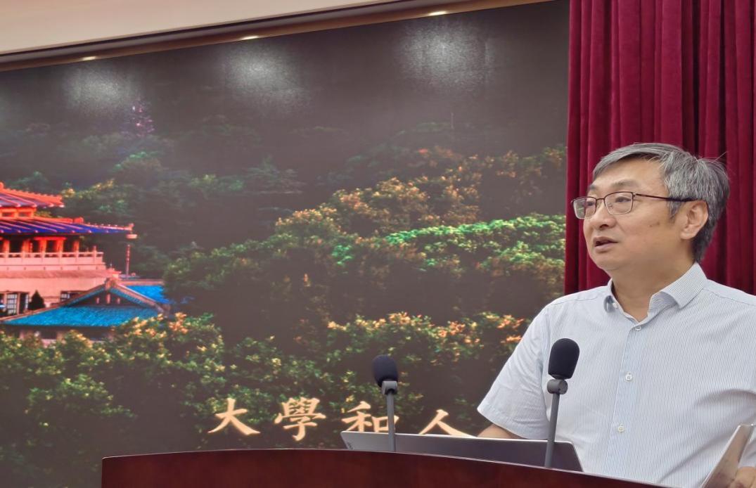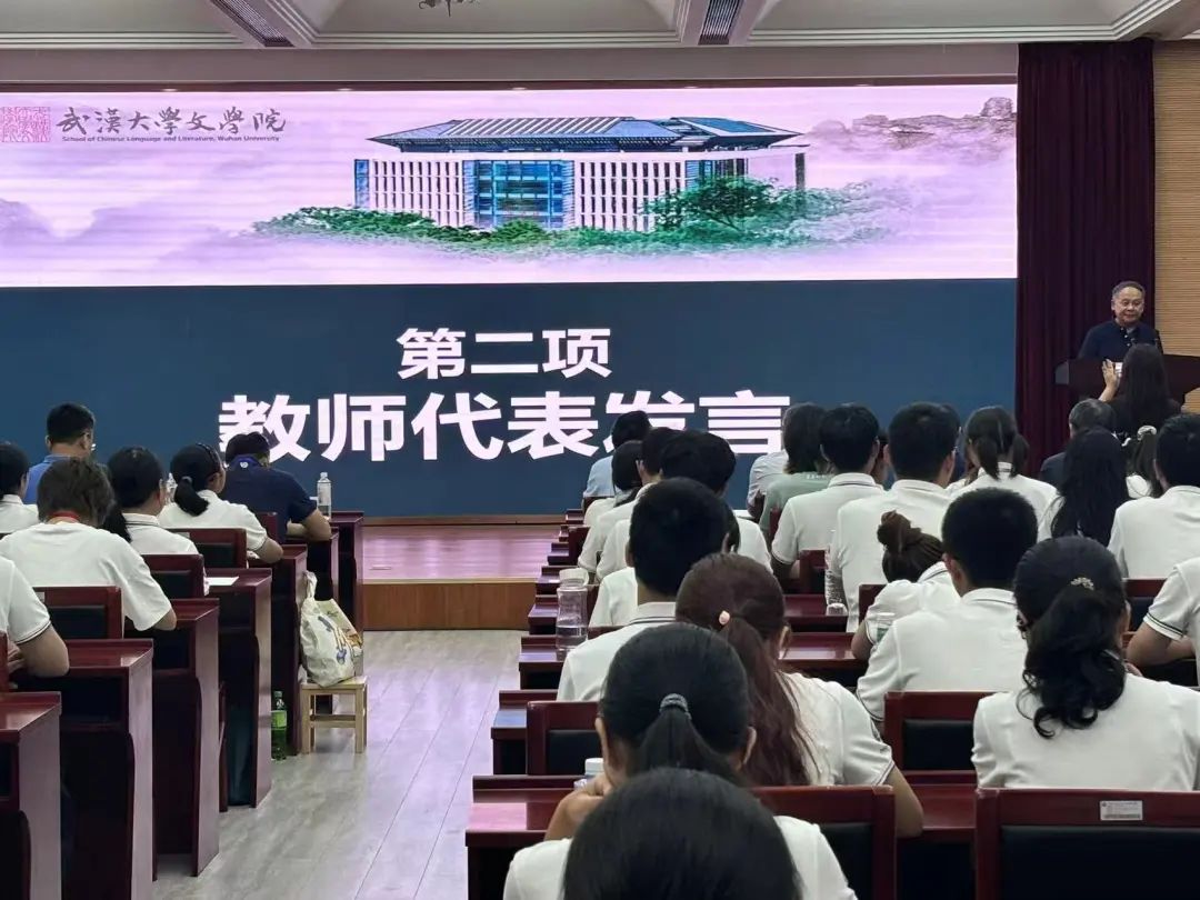 学院二级教授陈文新作为教师代表发言。他由衷地祝贺各位2024级本科新生进入水果派解说 ,并从自己的学习研究经历出发,与同学们分享了宝贵的学习经验与人生感悟。“读透经典、写好文章、讲好演讲”是他给同学们最真挚最朴实的三条建议,同时陈教授也希望同学们能够由以这三件事为基点,不断发展,昂扬向前。