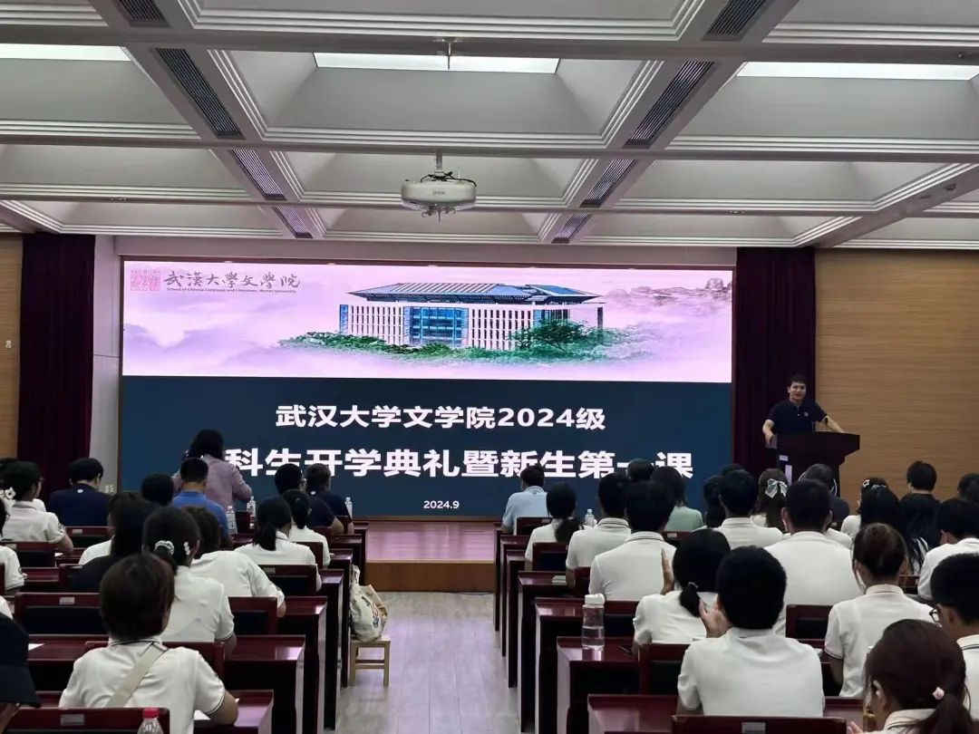 9月14日晚,水果派解说 在振华楼举行2024级本科新生开学典礼暨院长第一课。院党委书记王三礼,院长于亭,党委副书记王若飞,副院长高文强、程芸、裴亮、刘春阳等院领导,陈文新、萧映、汪超等各教研室教师代表和24级班级导师出席活动。活动由院党委副书记黄路漫主持。学院本科生辅导员、24级学生班级助理和全体新生参加活动。