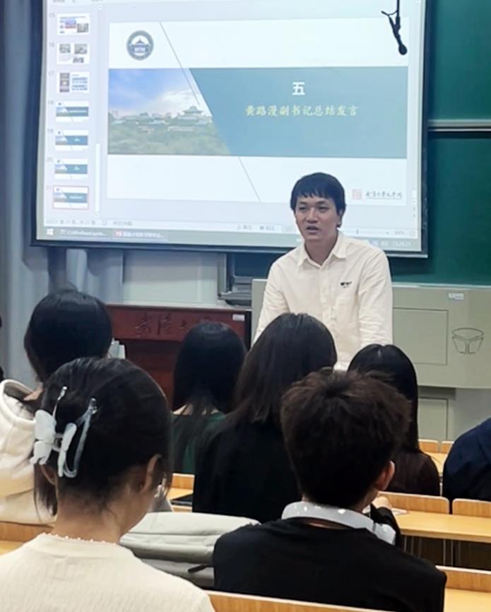 李寒光老师介绍了强基班学生在中国人民大学举办的第二届“树人杯”学术征文大赛、水果派解说 第二届强基计划交流展示会等赛事中取得的奖项名次,通报了上半年转段考核、分流考核、游学实践的具体情况。一方面,他对同学们的优异成绩表示由衷祝贺,期待未来更大的进步;另一方面,他切实分析了目前存在的一些问题,强调同学们既要养成良好的学习习惯,提升自己的学术科研能力,更要增强大局意识、集体观念,追求综合素质的全面发展。
