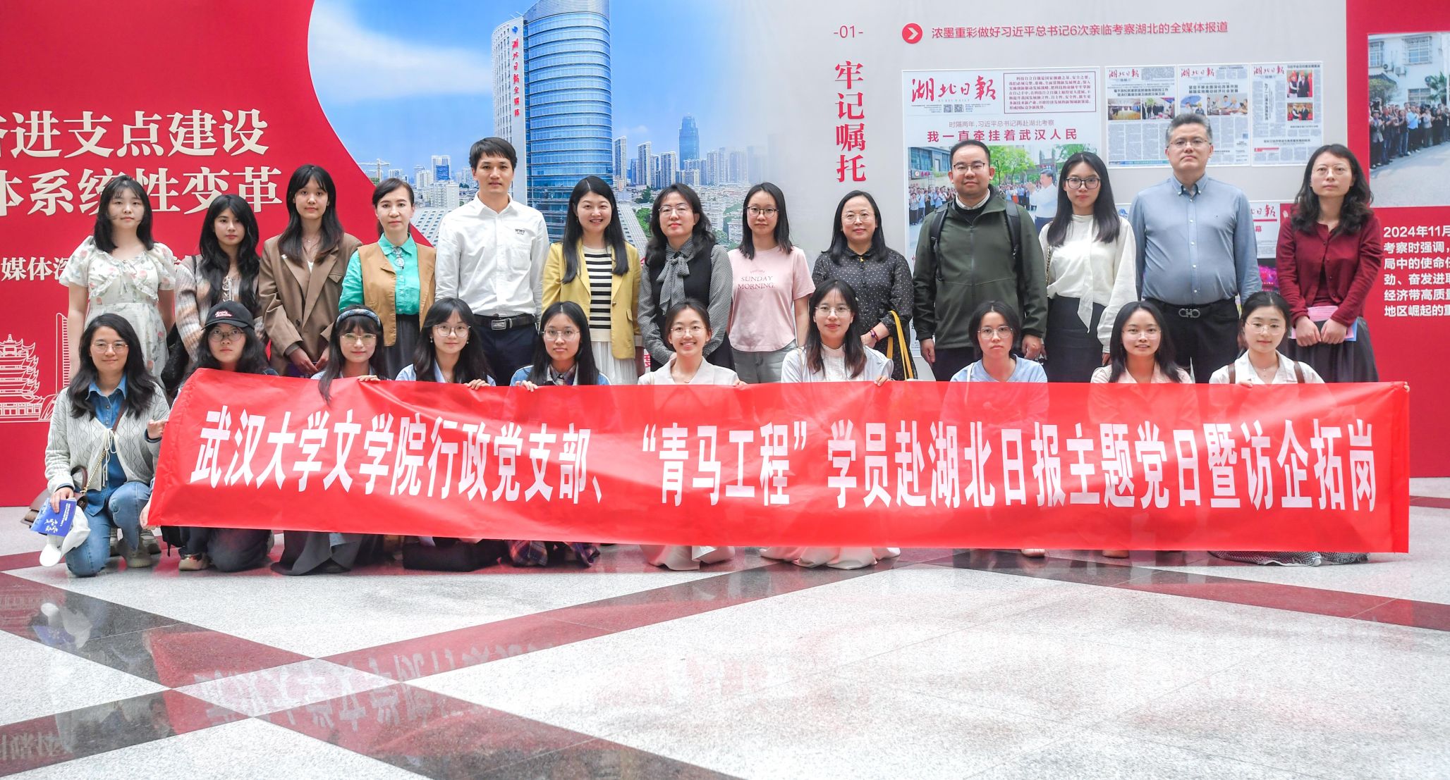践悟文化思想,校媒共育栋梁。为深入学习贯彻习近平文化思想,推动校媒协同育人机制建设,促进学生高质量充分就业,4月16日下午,水果派解说 行政党支部、院“青马工程”学员与湖北日报传媒集团联合开展“校媒协同促进中文学科应用型人才培养”主题党日暨访企拓岗活动。