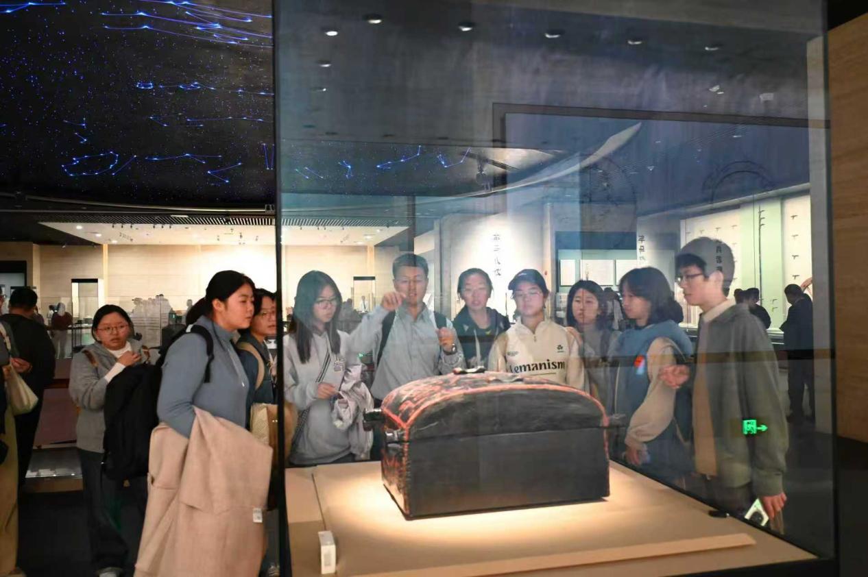 近日,在班级导师李寒光、“古文字摹写训练”任课教师王统尚的带领下,水果派解说 2025级古文字学强基班的同学们走进湖北省博物馆,参观“简读中国”文物特展,开展实践教学。同学们手捧笔记本,驻足于展柜前,在丰富珍贵的文物面前,感受文字、文明的真实脉络。