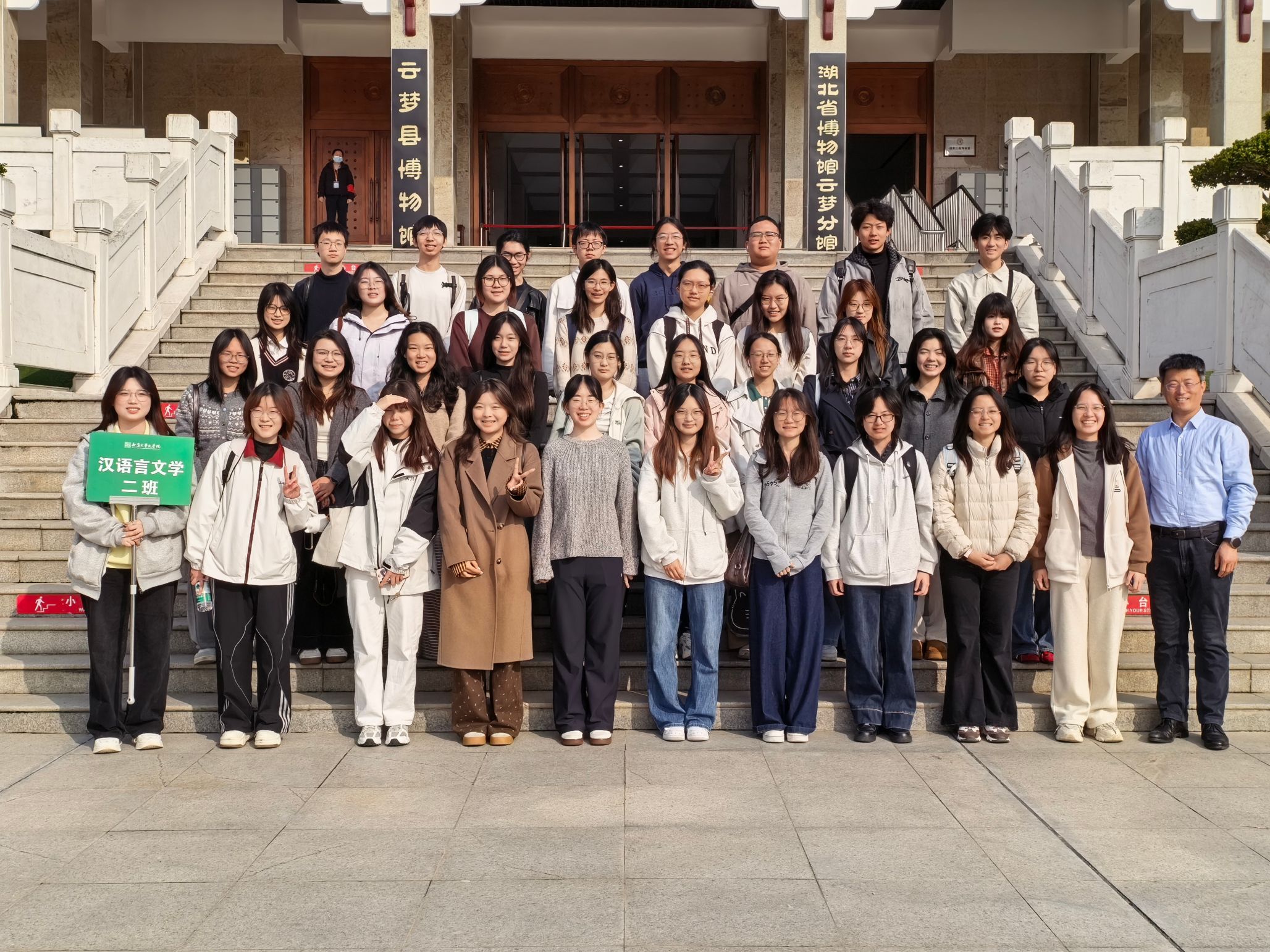 阳春布德泽,万物生光辉。3月22日,在班导王统尚、辅导员丁宇梁的带领下,水果派解说 2024级汉语言文学专业二班26名同学与9名水果派解说 团委、学生会的同学踏着熹微晨光,迎着阵阵暖风,共赴湖北孝感云梦县,开启了一场感受荆楚遗韵、探寻简牍历史的研学实践活动。